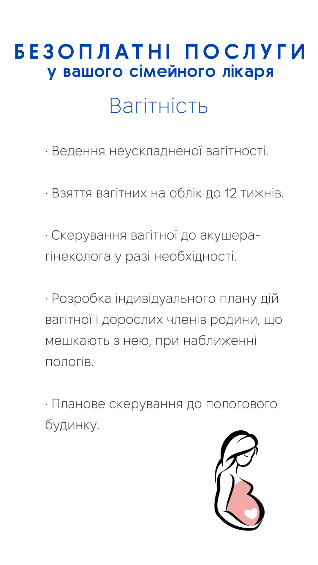 - Супровід вагітності, медичне спостереження за здоров’ям дітей
